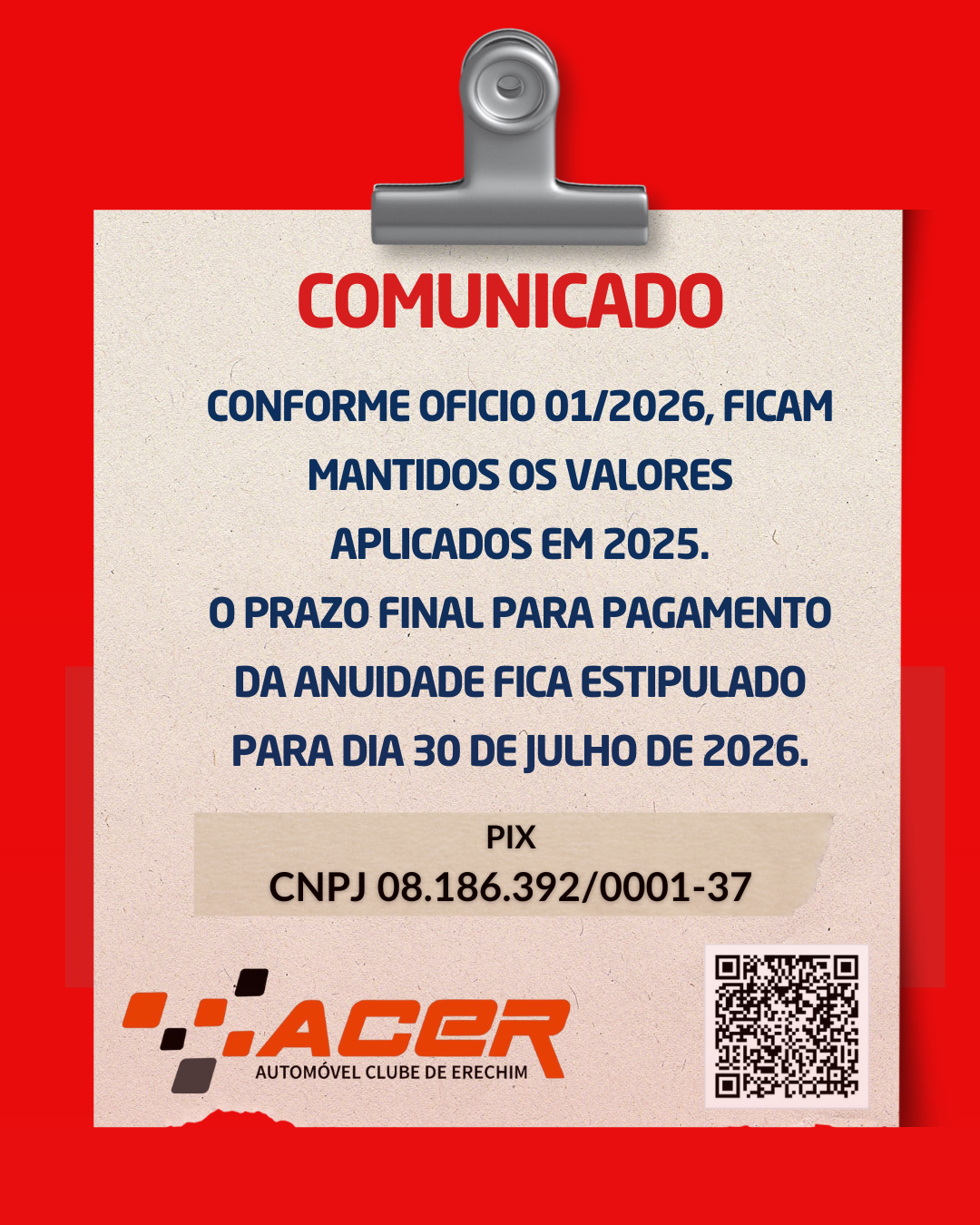 Na última quarta feira 03 de setembro o ACER realizou Assembleia Geral Extraordinária para apreciar e votar o parecer do Conselho Fiscal referente ao primeiro semestre de...